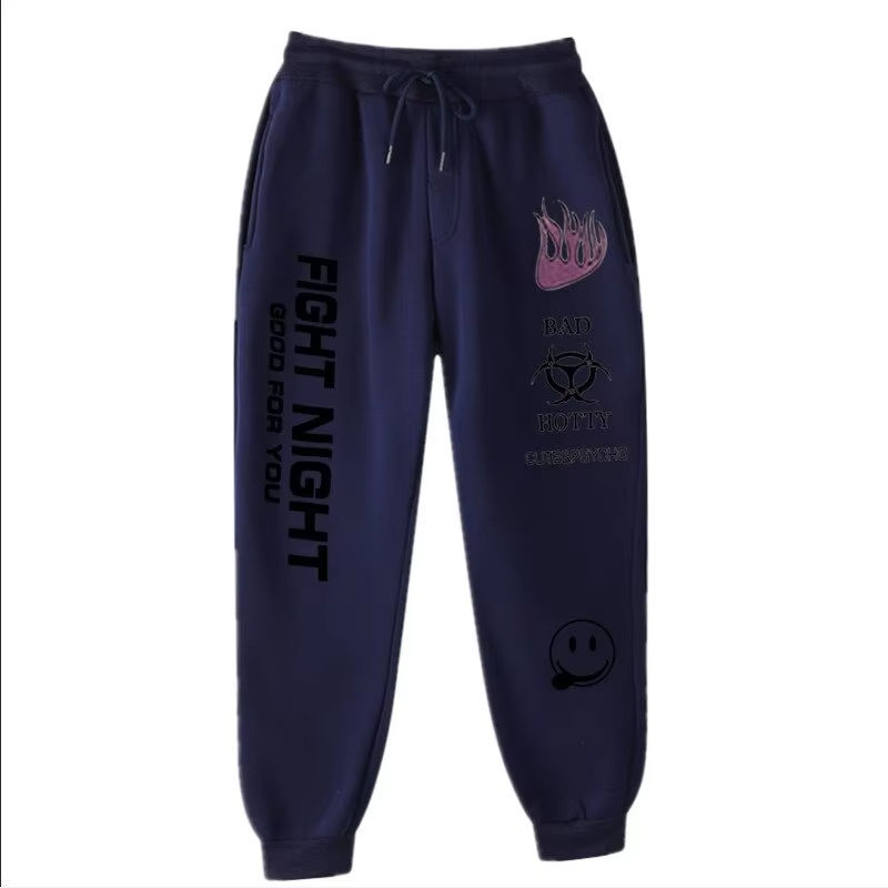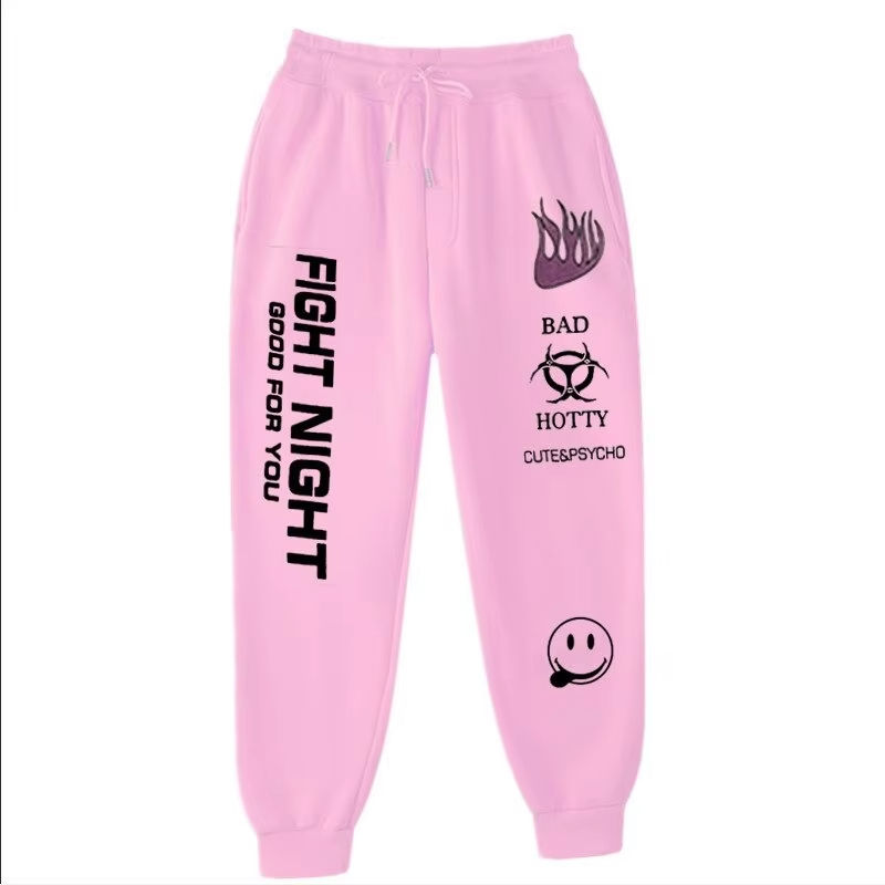 Women's Casual 'Fight Night' Pencil Print Joggers Harajuku Style Baggy Sweatpants Wide Leg High Waist Drawstring Loose Fit Mid