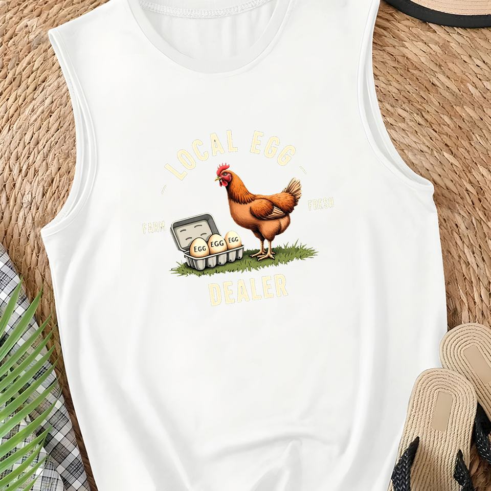 Women's Casual Knitted Vest with Brown Chicken and Eggs Print