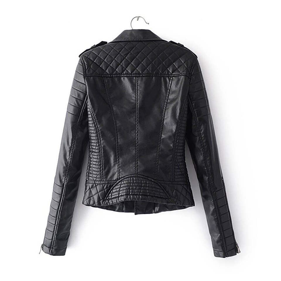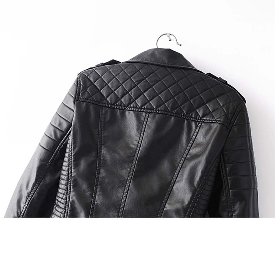 Women's Casual Leather Jacket-Soft Smooth Leather Waterproof & Windproof Nylon Lining Outdoor Street Look