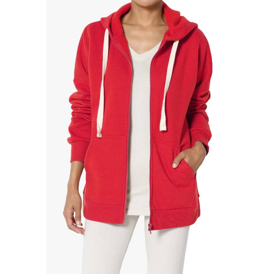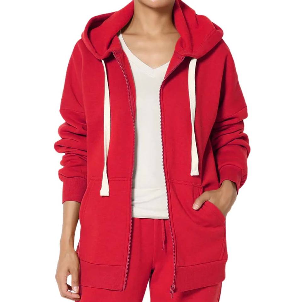 Women's Casual Lightweight Zip-Up Sweatshirt Jacket Fleece French Fabric Winter Season Printed Pattern Pockets Hoodie
