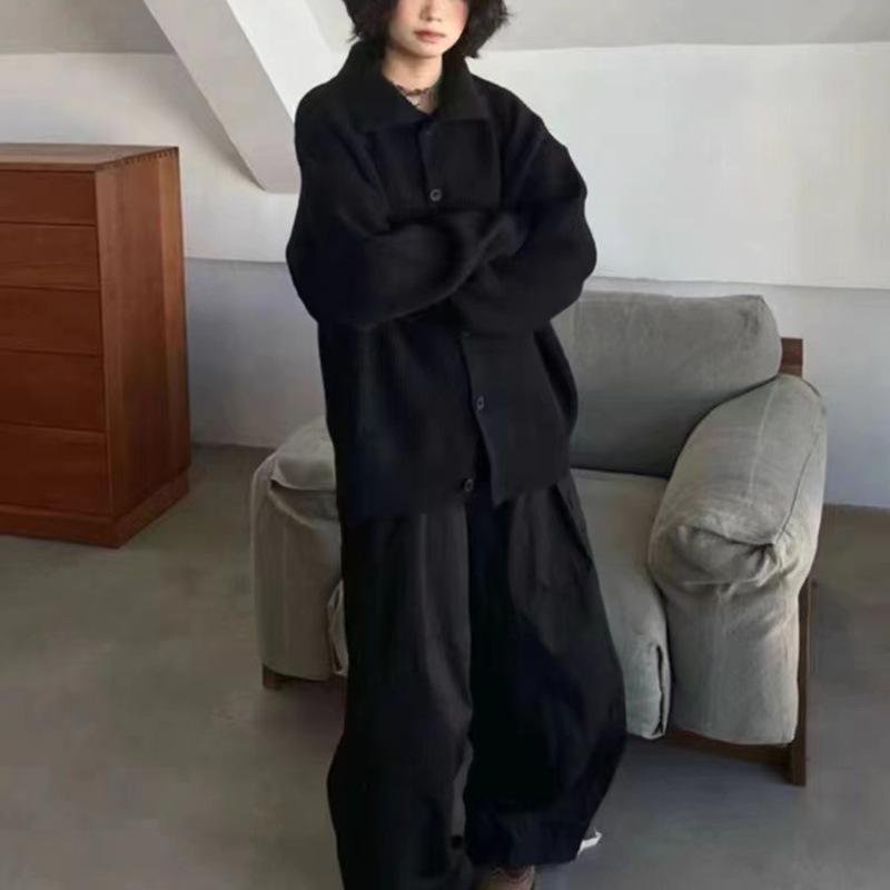 Women's Casual Long Sleeve Cardigan Autumn New Trendy Short Jacket with Simple Silk Pullover Winter Metal Label Knitted Coat