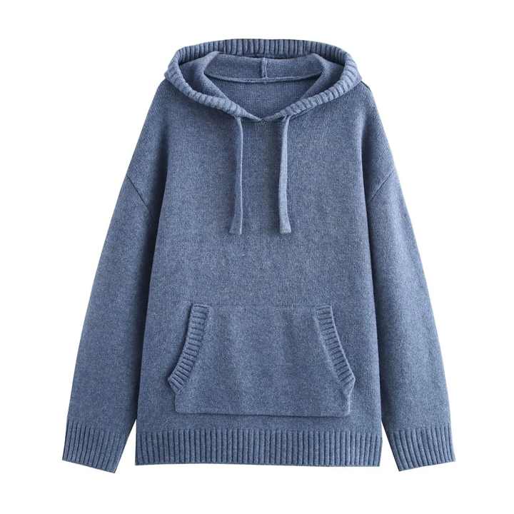 Women's Casual Long Sleeved Kangaroo Pocket Hoodie New Loose Lace up Ribbed Layer Knitwear Autumn Season Lined Design Front Logo
