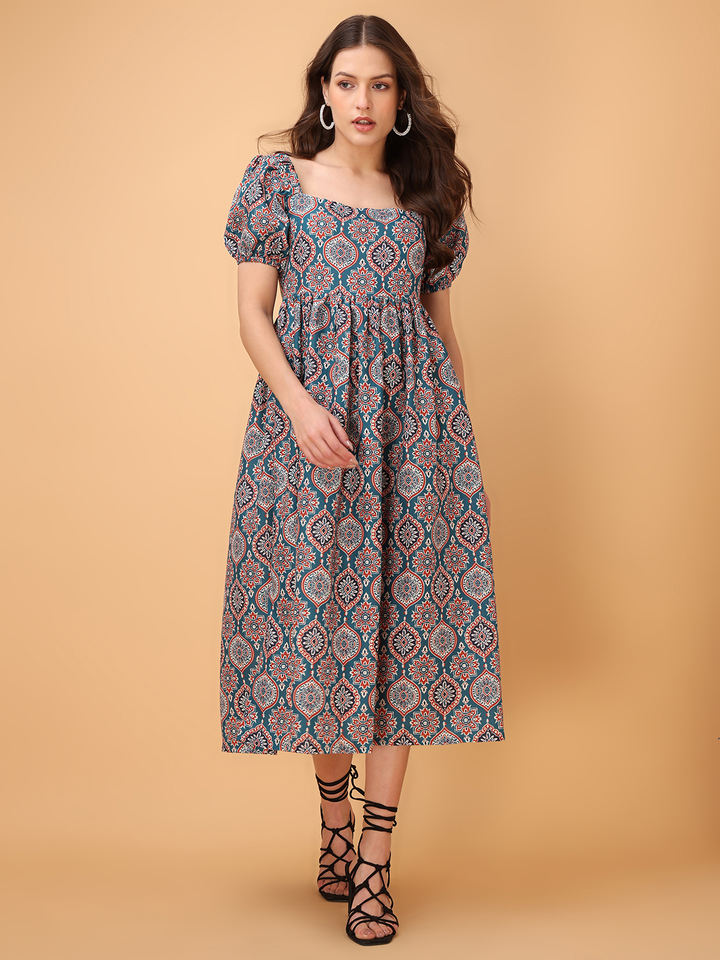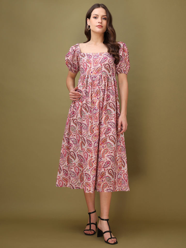 Women's Casual Maxi Length Short Sleeves Square Neck Maxi Fit & Flared Dress
