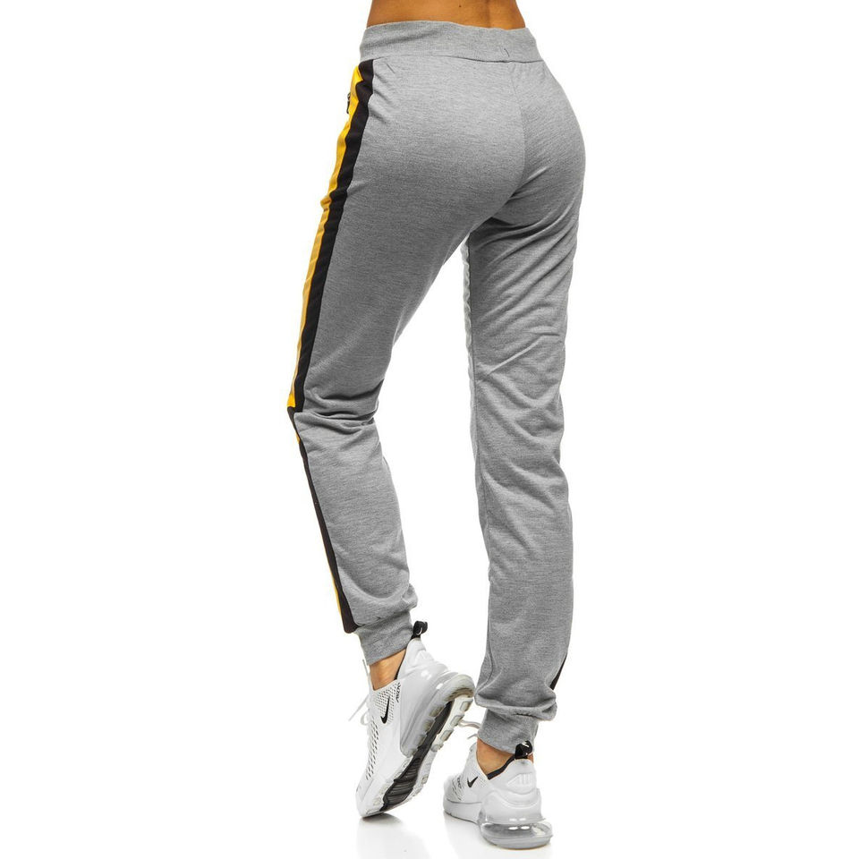 Women's Casual Mid Jogger Sweatpants Breathable Quick Dry Silk High Leggings Logo Printed Side Stripe Decoration Drawstring