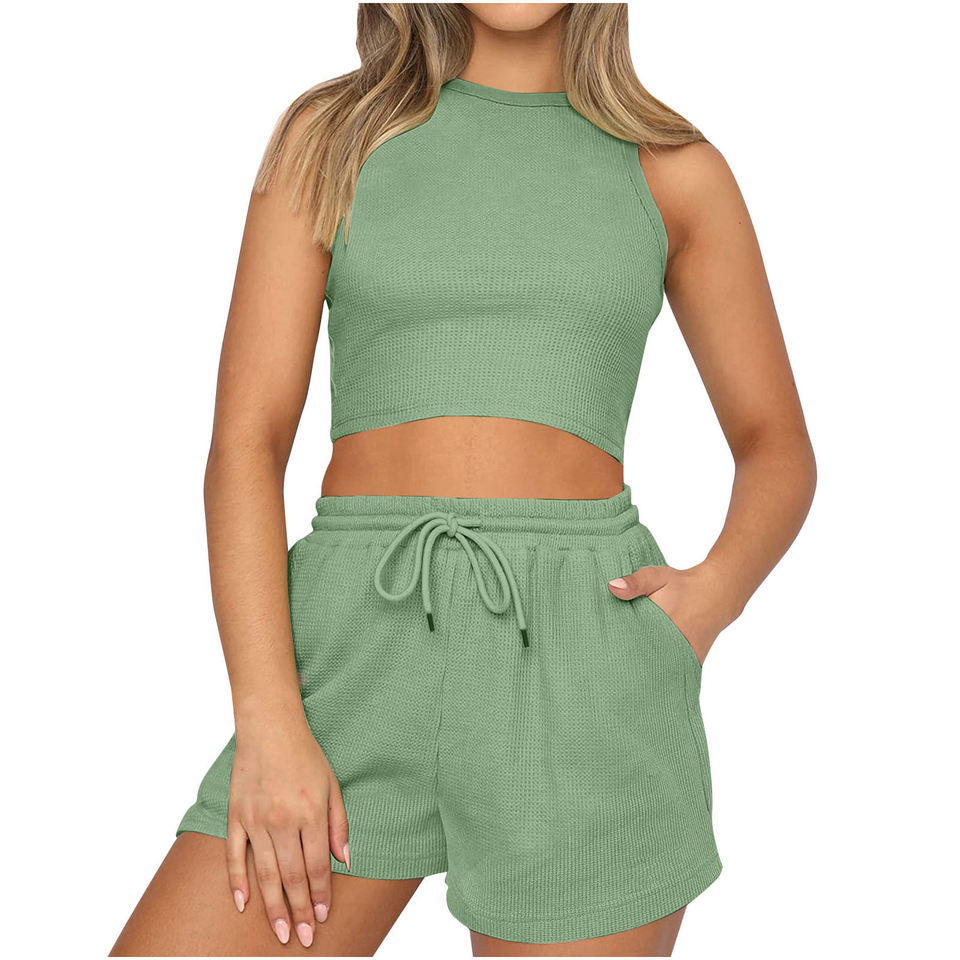 Women's Casual Pajamas Sleeveless Shorts 2 Piece Set Sleepwear Cotton Summer Fashion Loungewear Women's Short Sets