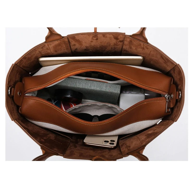 Women's Casual Premium Quality High Quality Fashion Large Capacity Genuine Leather Tote Bag Zipper Closure Canvas Lining Logo
