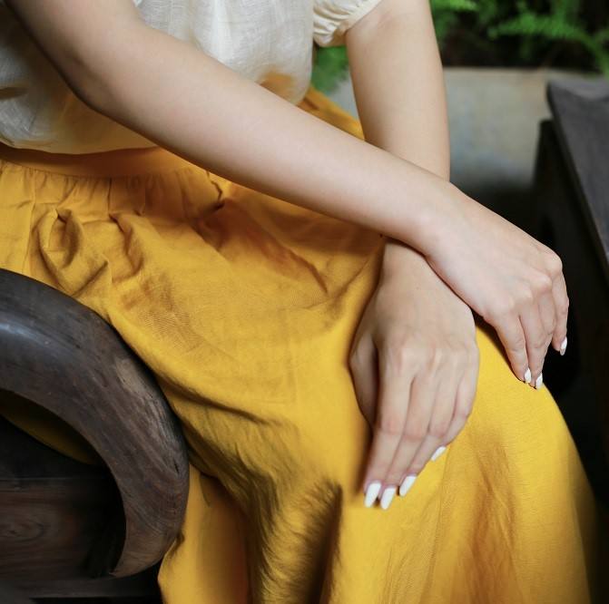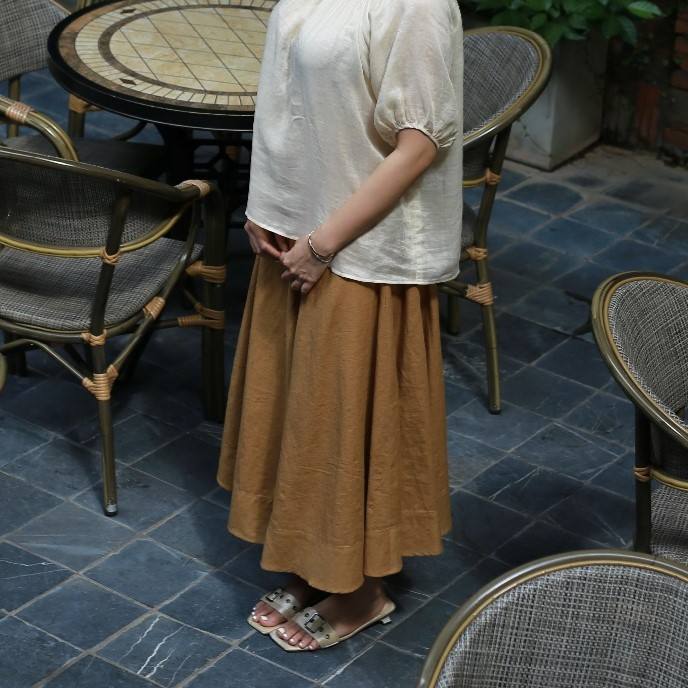 Women's Breathable Casual Satin Midi Skirt with Natural Waistline A-Line Design Pleats and Elastic Band