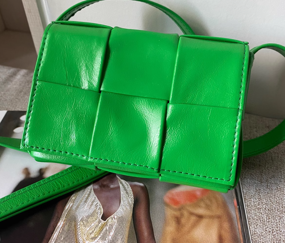 Women's Casual Sheepskin Woven Small Square Clutch Bag Crossbody Flap Genuine Leather Straw Logo-Designed Cassette Flap Bag