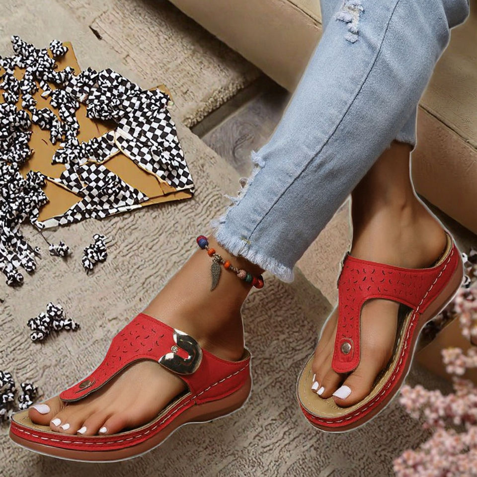 Women's Casual Slope Heeled Flip-Flops Summer Outdoor Comfortable Quick-Drying with Hollow Metal Buckle EVA & PVC Insole