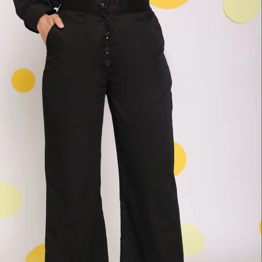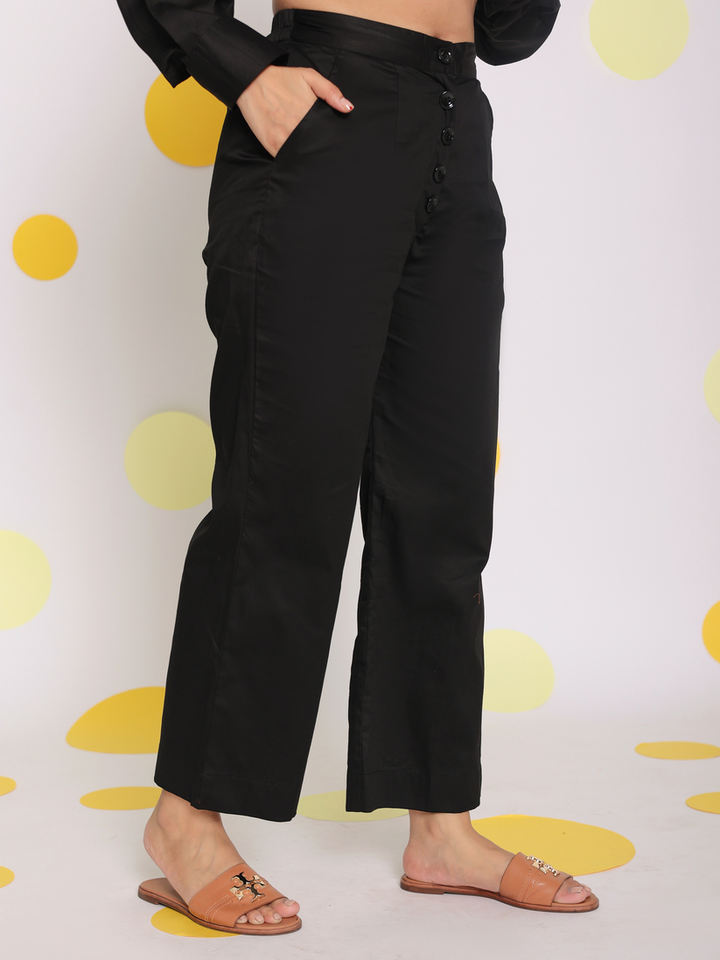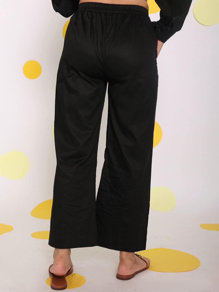 Product Name:Black Cotton Relaxed Solid Pant