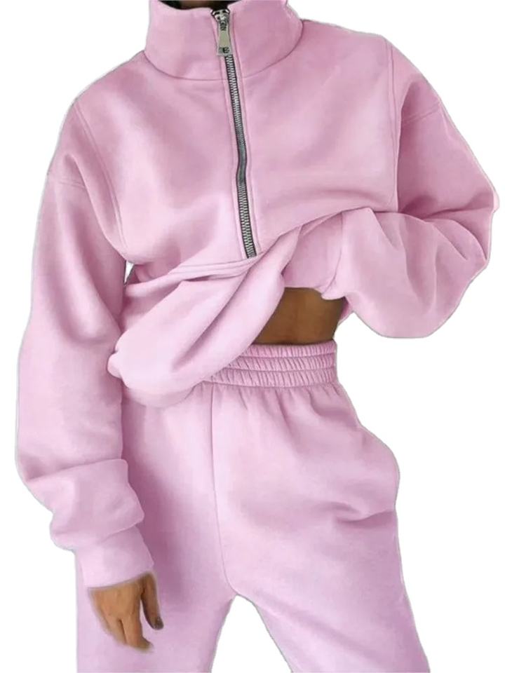 Women's Casual Sports Hoodie & Pants Set 100% Cotton Autumn Winter Warm Loose Zipper Top Sweater Two-Piece Streetwear Suit
