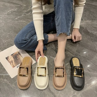 Women's Casual Square Gold Plated Mule Loafers Stylish Clogs & Mules Model LK-BL04