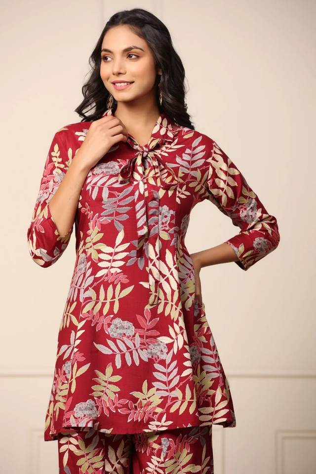 Women's Casual Summer Printed Short Kurta Pant Set Long Arm Co-ords Set with Long Sleeves for Girls
