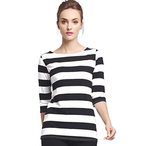 Women's Casual Summer Short Sleeve T-Shirt Scoop Neck Black and White Vertical Striped Loose Fit