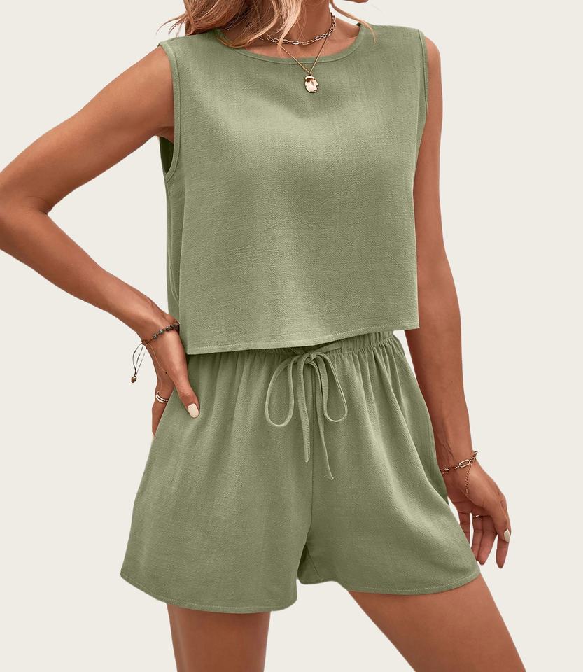 Women's Casual Two-Piece Set for Summer O-Neck T-Shirts and Above Knee Shorts