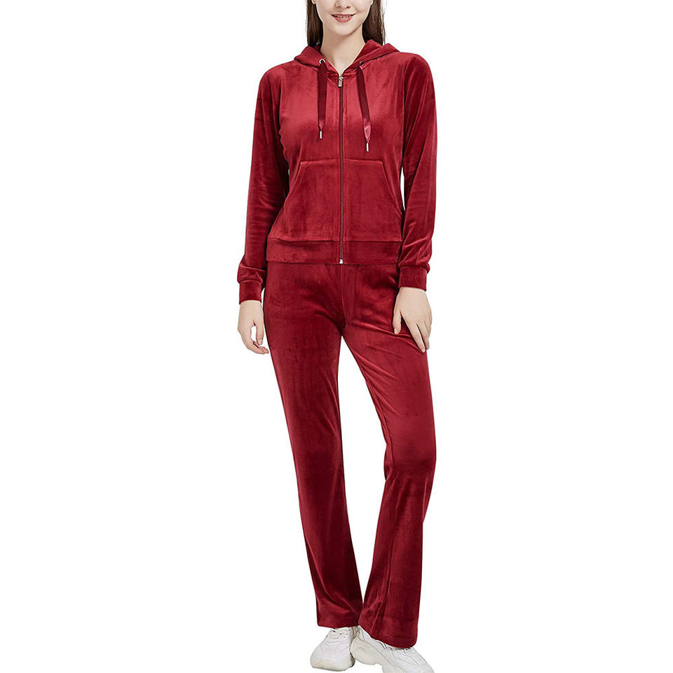 Women's Casual Velvet Tracksuit High Quality Soft Breathable Jogger Set with Zipper Closure Wholesale 2 Piece Winter Hoodies
