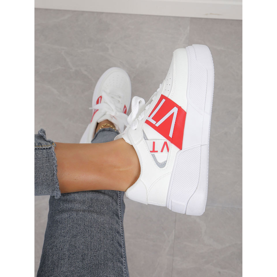Women's Casual White Lace-Up Shoes Thick Sole Height-Enhancing Letter Design Color Matching Casual Height Increasing Shoes