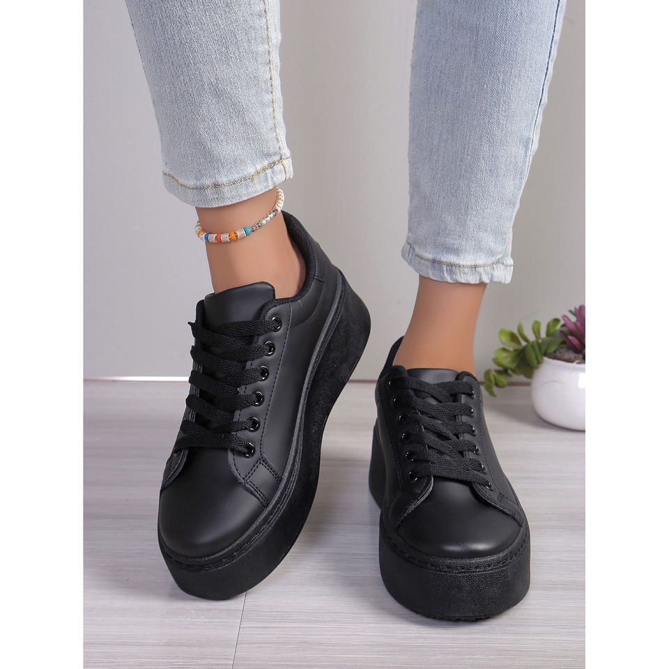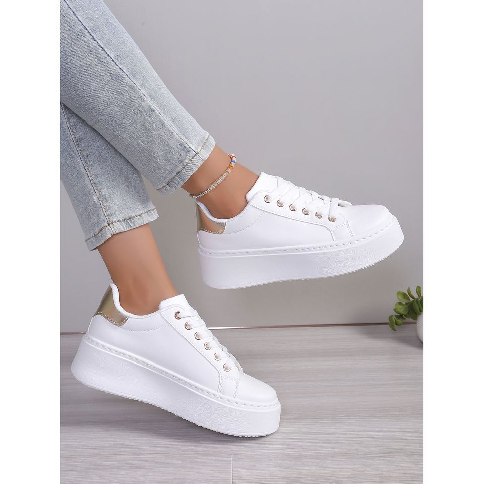 Women's Casual White Sports Shoes with Thick Sole Simple Height Increasing Slip-On Fashion