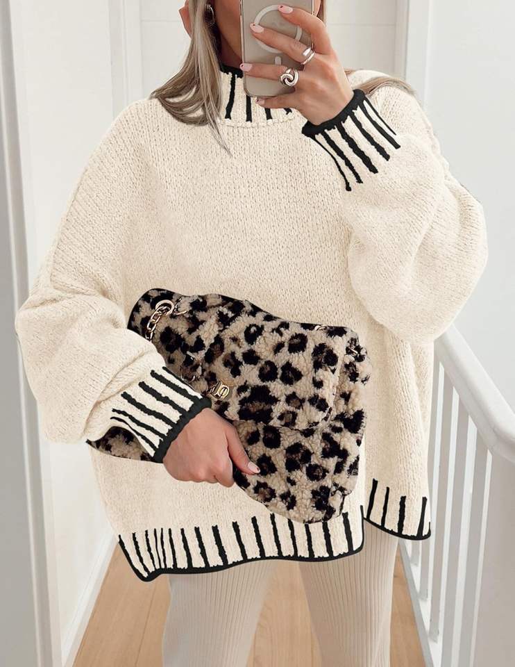 Women's Casual Winter Oversized Pullover Sweaters Long Sleeve Mock Neck Chunky Knit Slouchy Solid Jumper Tops