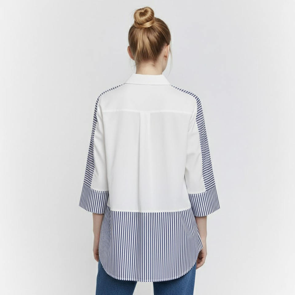 Women's Casual striped Turn-down Collar Three Quarter Sleeve Poplin Washable Spring Summer Shirt