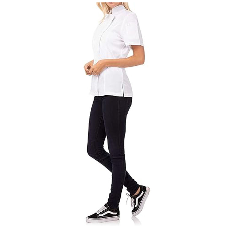 Women's Chef Jacket Short Sleeve Woven Cotton Polyester with Zip Restaurant & Bar Kitchen Uniform Miden International Wholesale
