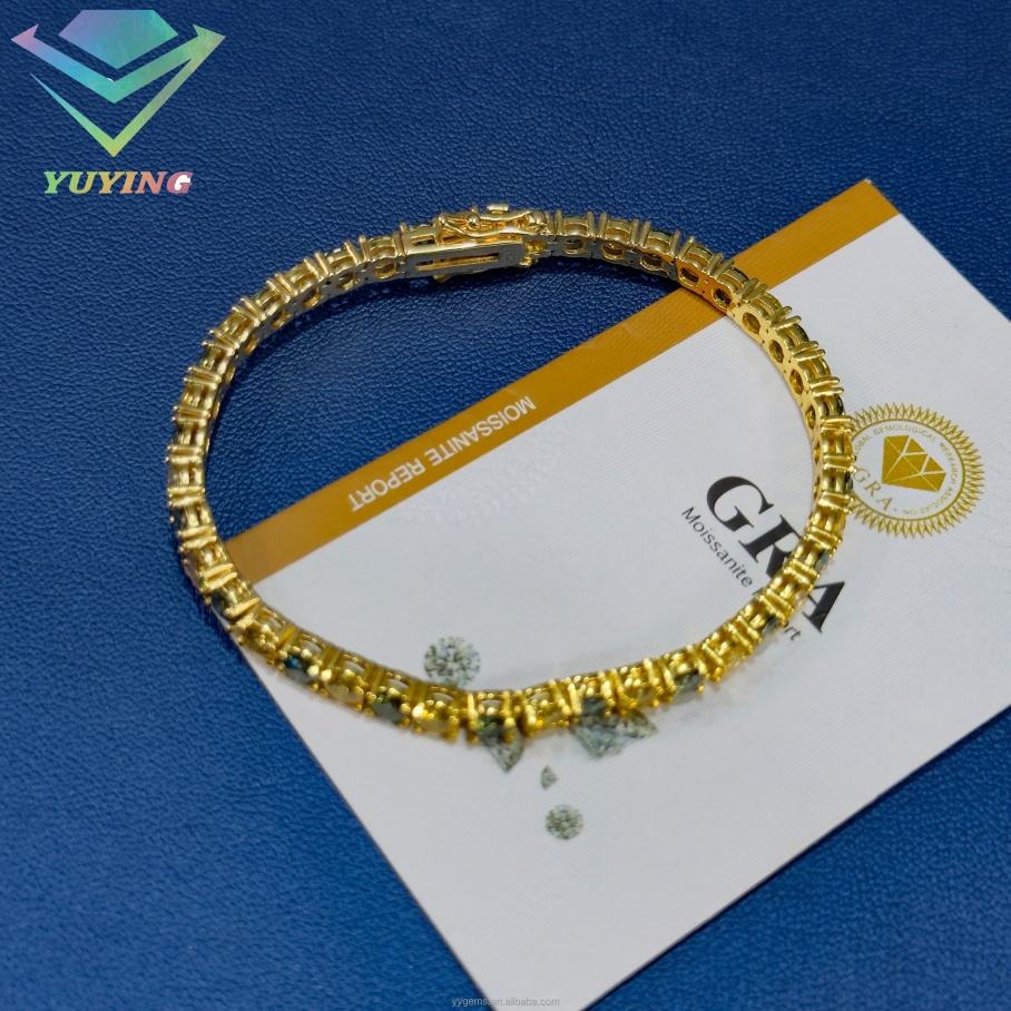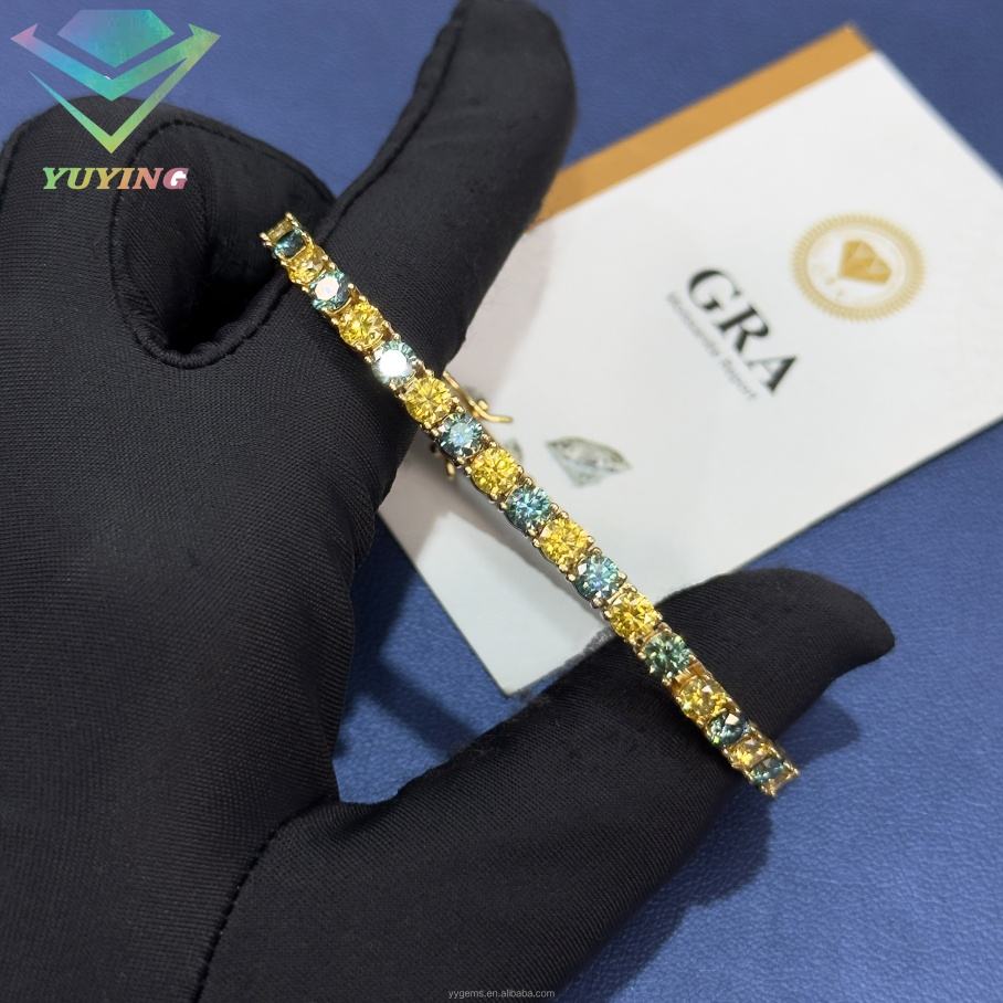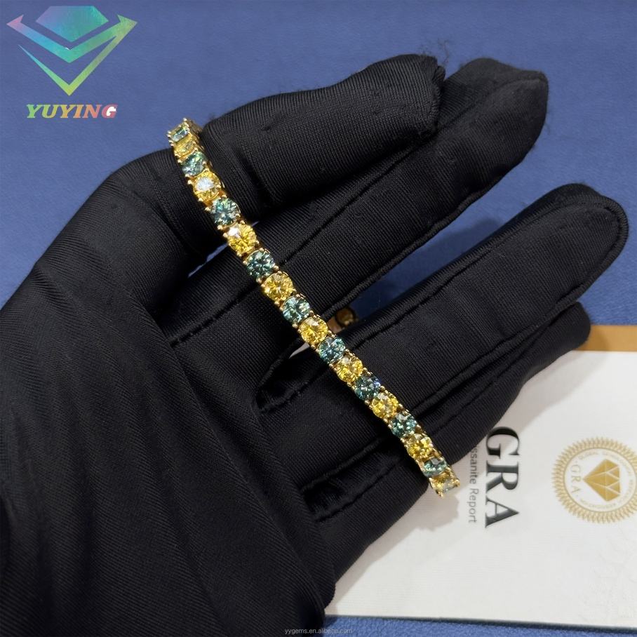 Women's Classic 925 Sterling Silver Colorful Round Brilliant Cut Moissanite Diamond Tennis Chain Bracelet