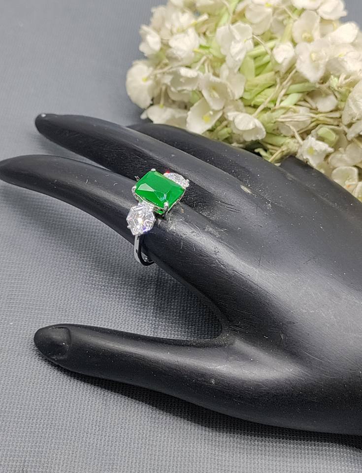 Women's Classic Brass Rhodium Plated Geometric Zircon Finger Ring Sku-5970 E4