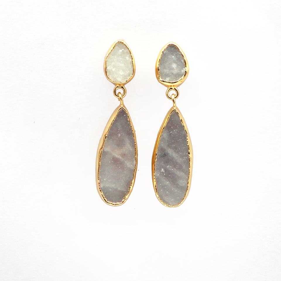 Women's Classic Gold-Plated Drop Earrings Agate Druzy Gemstone Fashion Jewelry for Parties Weddings Engagements Made of Brass