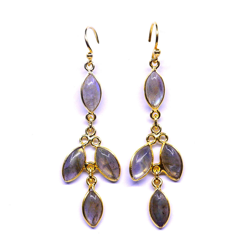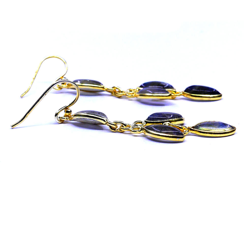 Women's Classic Style 925 Sterling Silver Gold Plated Labradorite Gemstone Charm Earrings Set Weddings Daily Wear Wholesale