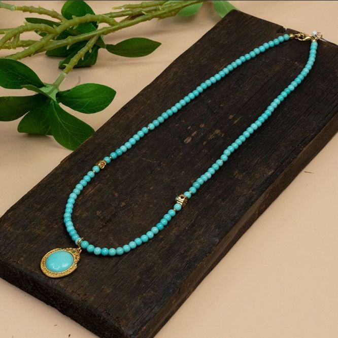 Turquoise Round Bead Pendant DIY NecklaceJewelry Main Material
