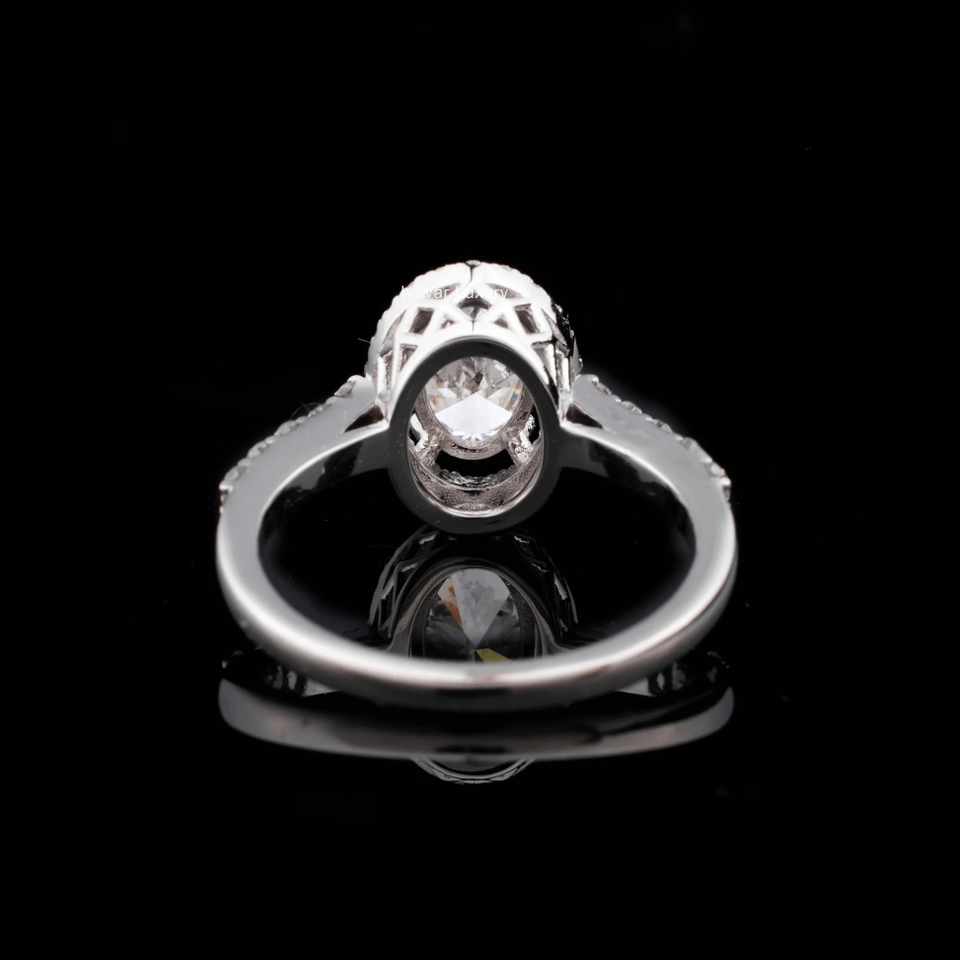 Women's Classic Vintage Engagement Ring Big White Diamond Moissanite Solid 925 Sterling Silver Oval Shape Iced Vintage Style