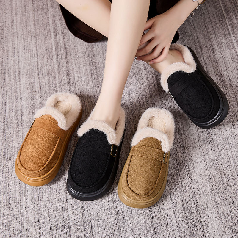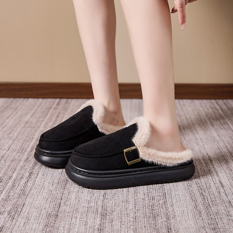 Women's Closed-back Slippers Warm Non-slip Outdoor Indoor House Shoes With Fuzzy Collar
