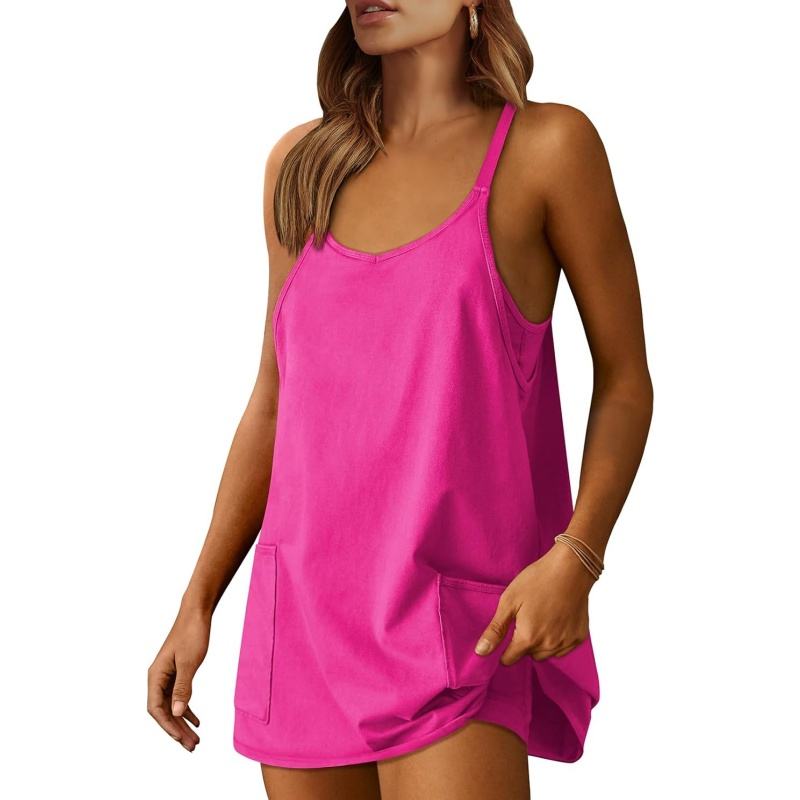 Women's Clothing Mini Romper Dress Workout Tennis Active Sports Athleisure Outfits Built in Shorts Trendy Vacation Black Medium