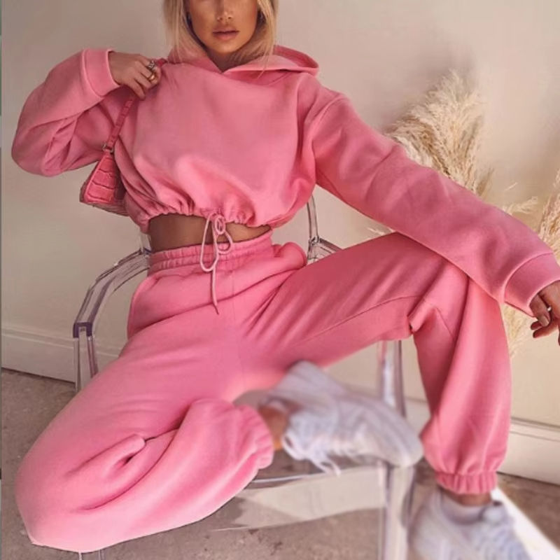 Women's Clothing Set 2 Piece Pullover Solid Patter Crop Top Hoodie And Trousers New Arrivals Summer Two Piece Set For Women