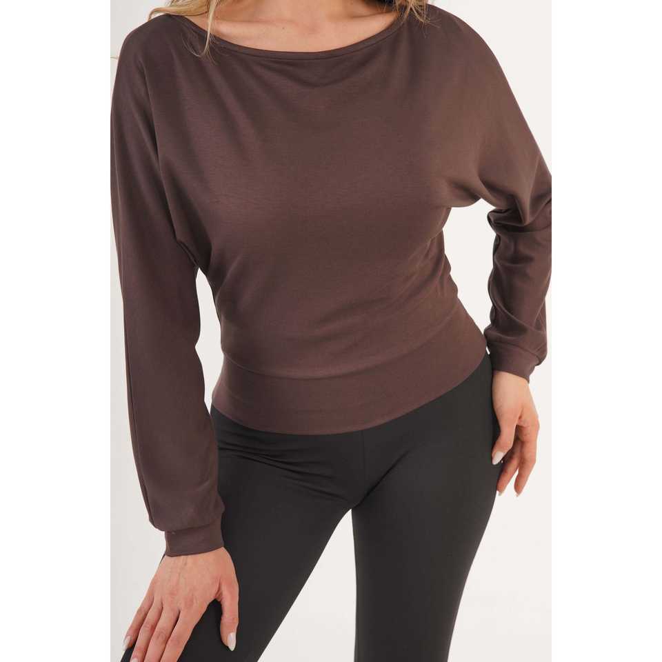 Women's Coffee Blouse with Batwing Sleeve Thin Fabric Knit Tops Wholesale Available