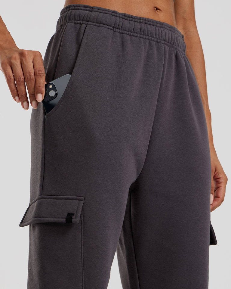 Women's Comfortable Cargo Joggers Unique Custom Graphite Terry Fleece Sweatpants with Soft Touch Fabric for Winter