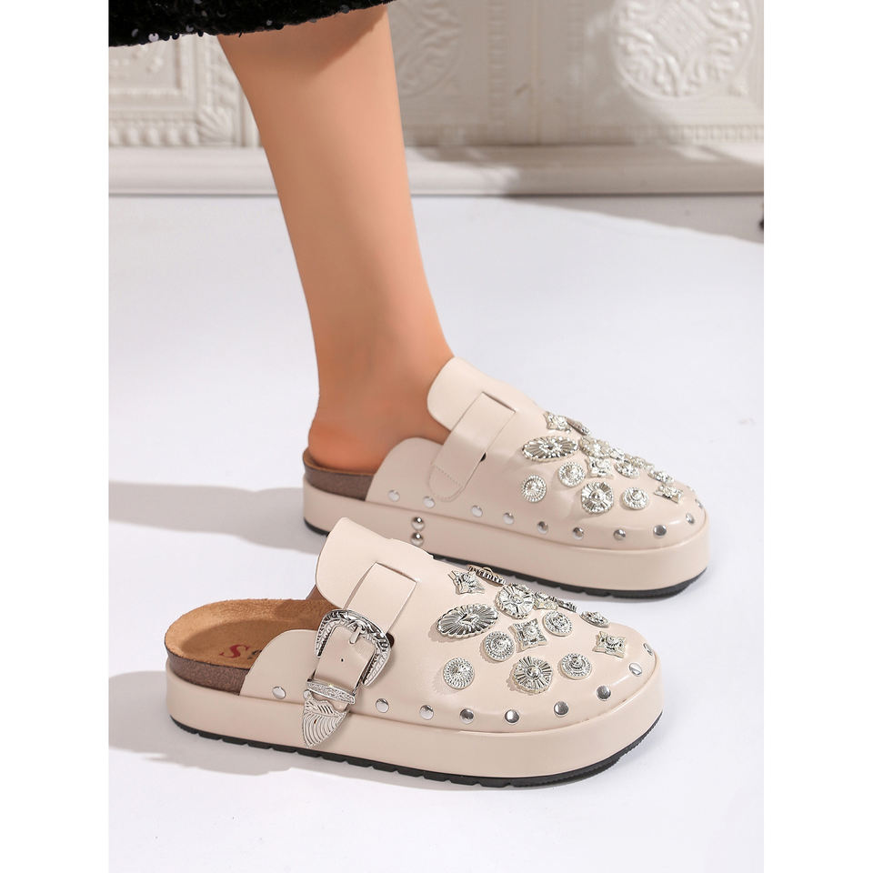 Women's Comfortable Casual Fashion Heeled Sandals Summer Slip-On Rhinestone Decorated Casual Shoes