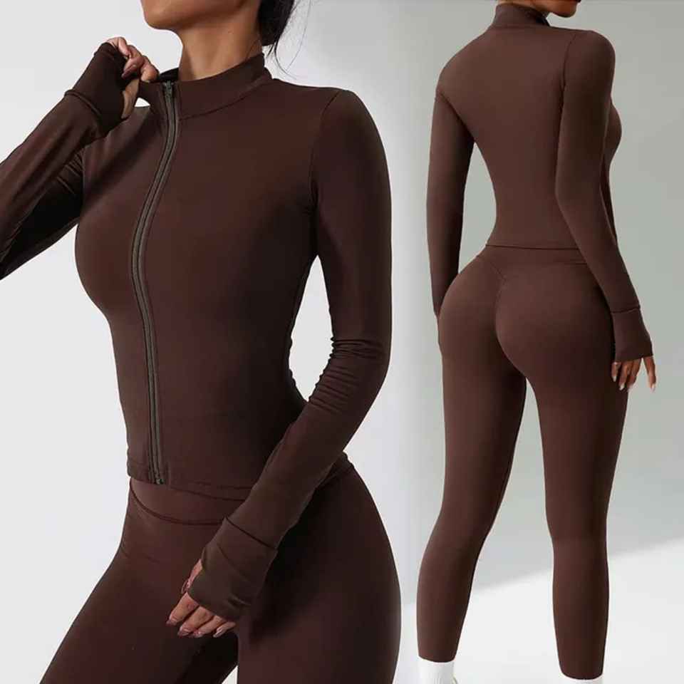 Women's Complete Workout Sets Plaid Strappy Sports Bras High Waist Leggings Crop Top Jacket for Fitness Yoga Running Gym