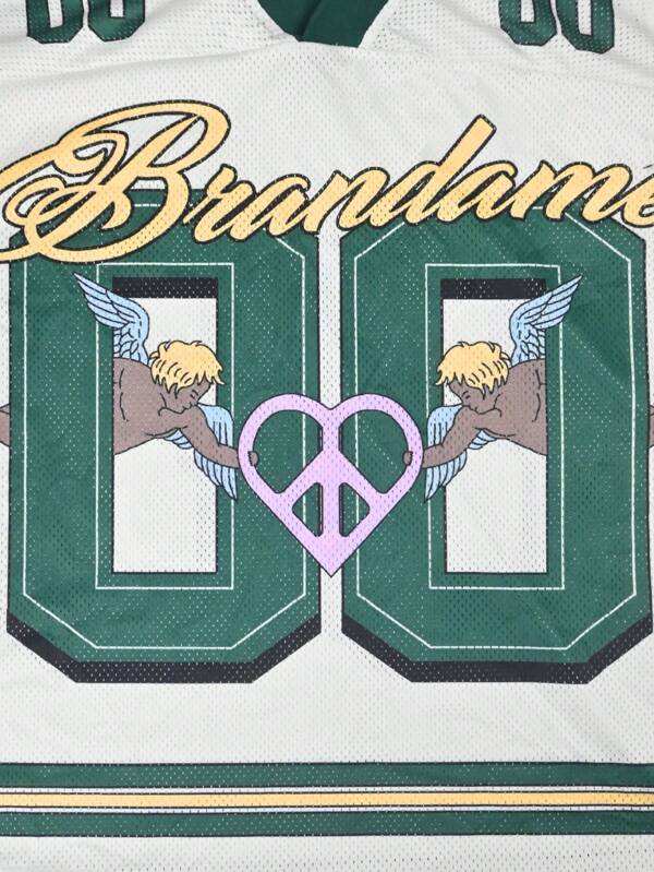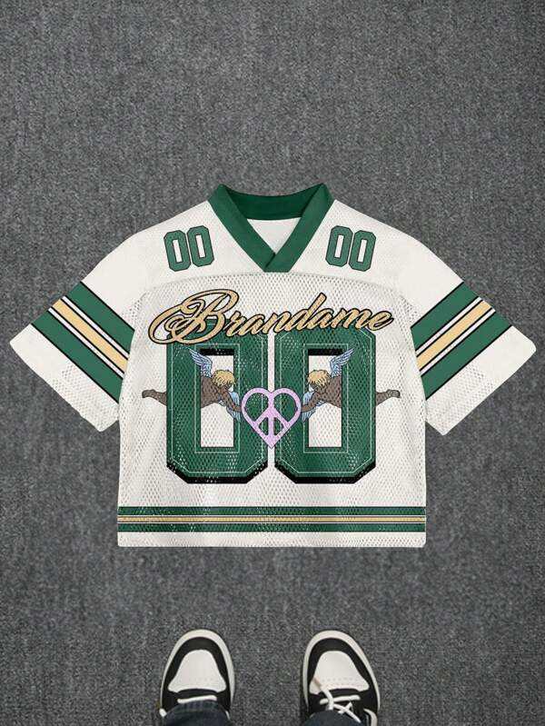 Women's Contrast Green Crop Mesh Shirt American Football Jersey Sublimation Graphic Short Sleeve Print V Neck Streetwear Tee
