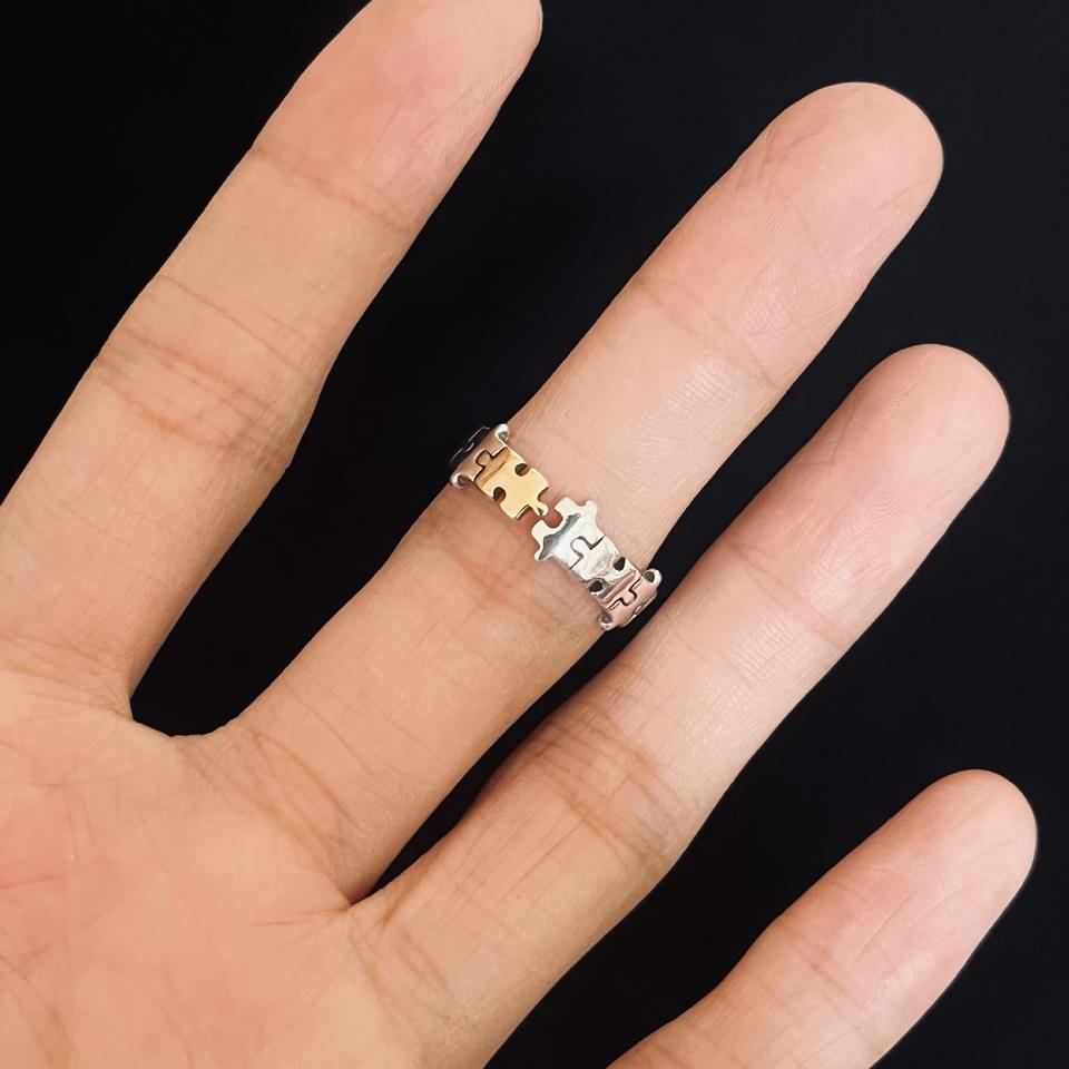 Women's Cool Style Puzzle Fragment Ring with Inlay S925 Pure Silver Unique Niche Personality Design High Beauty Tail Ring