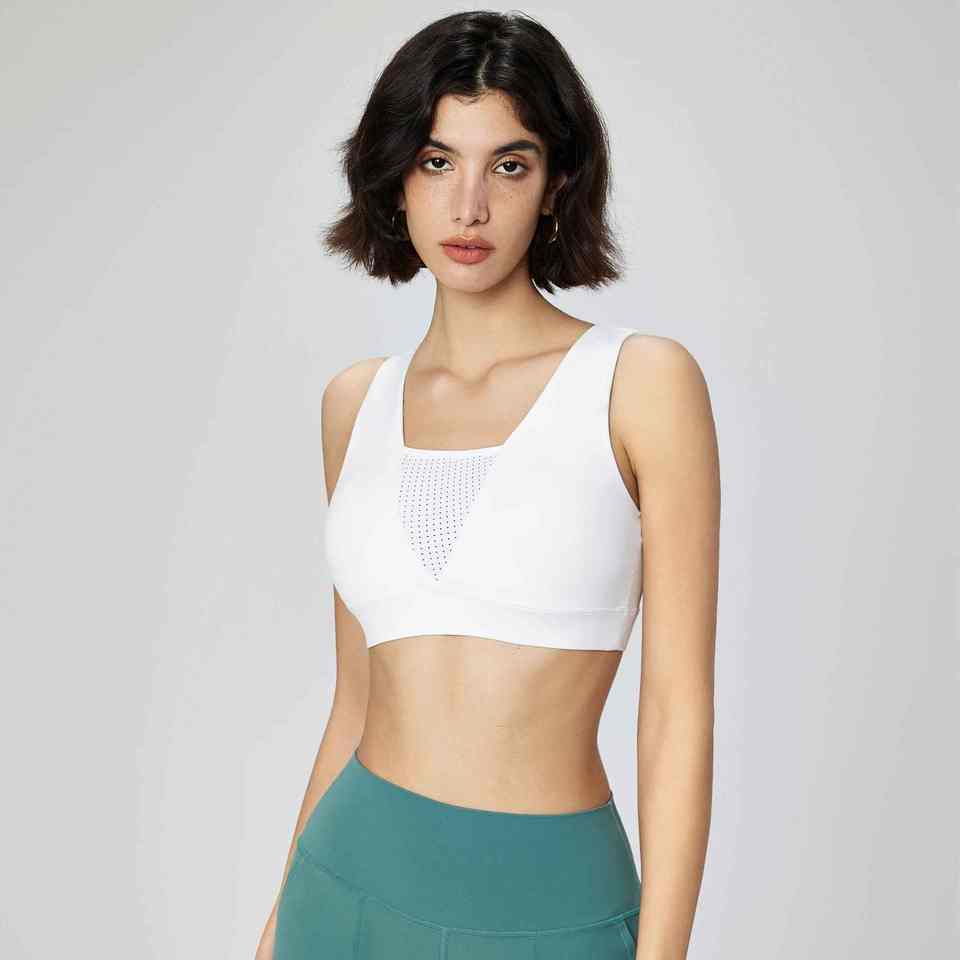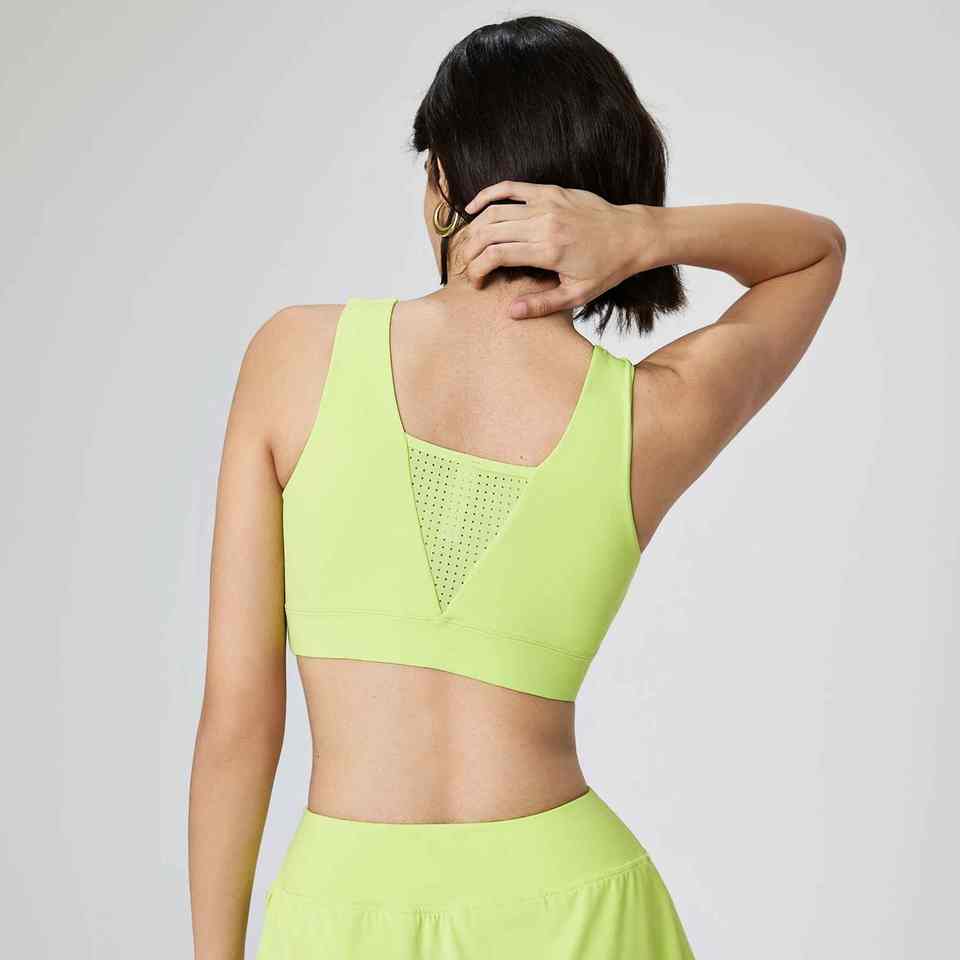 Women's Cool Summer Gym & Yoga Sports Bra Breathable Mesh Tank Top with V-Neck & Removable Chest Pad Fitness Crop Top