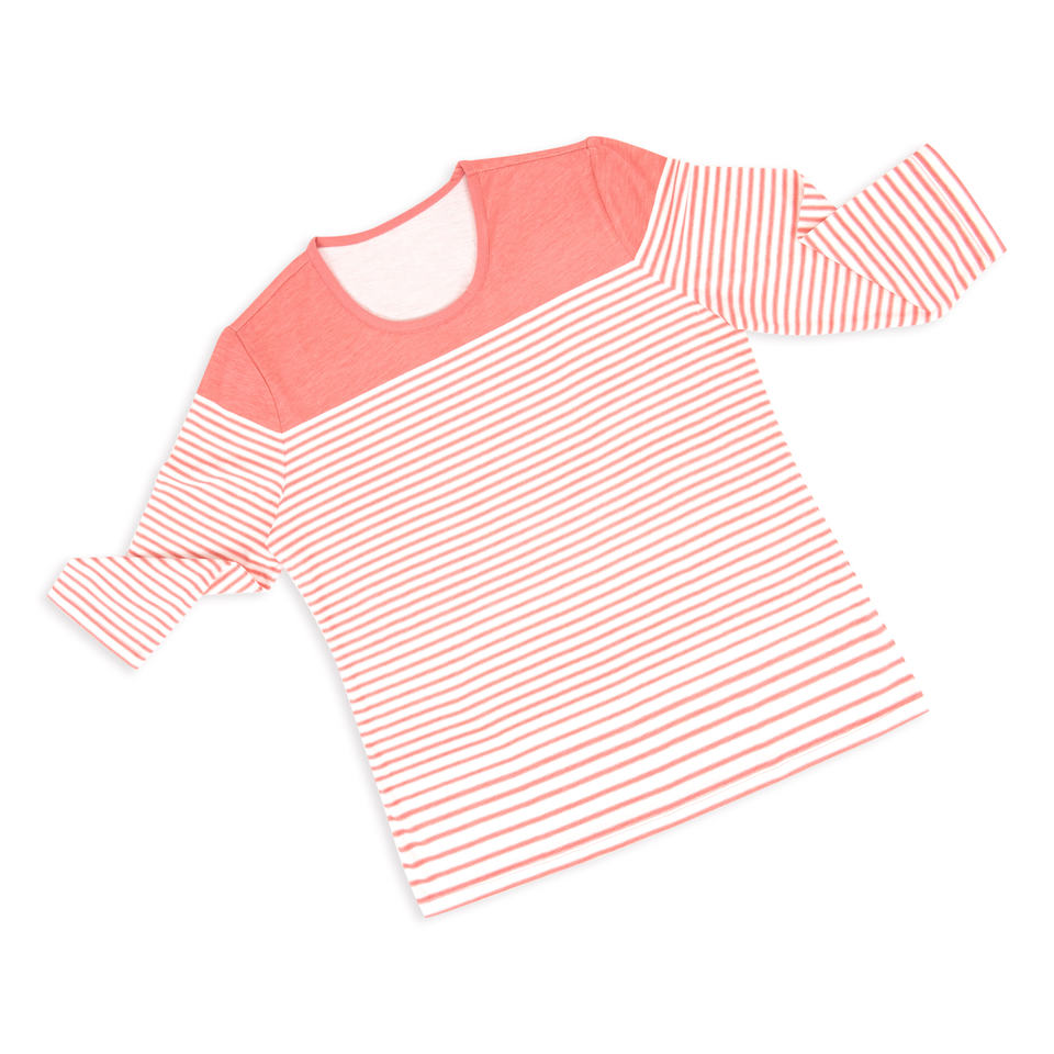 Women's Striped T-Shirt, Coral Pink Long Sleeve Tee