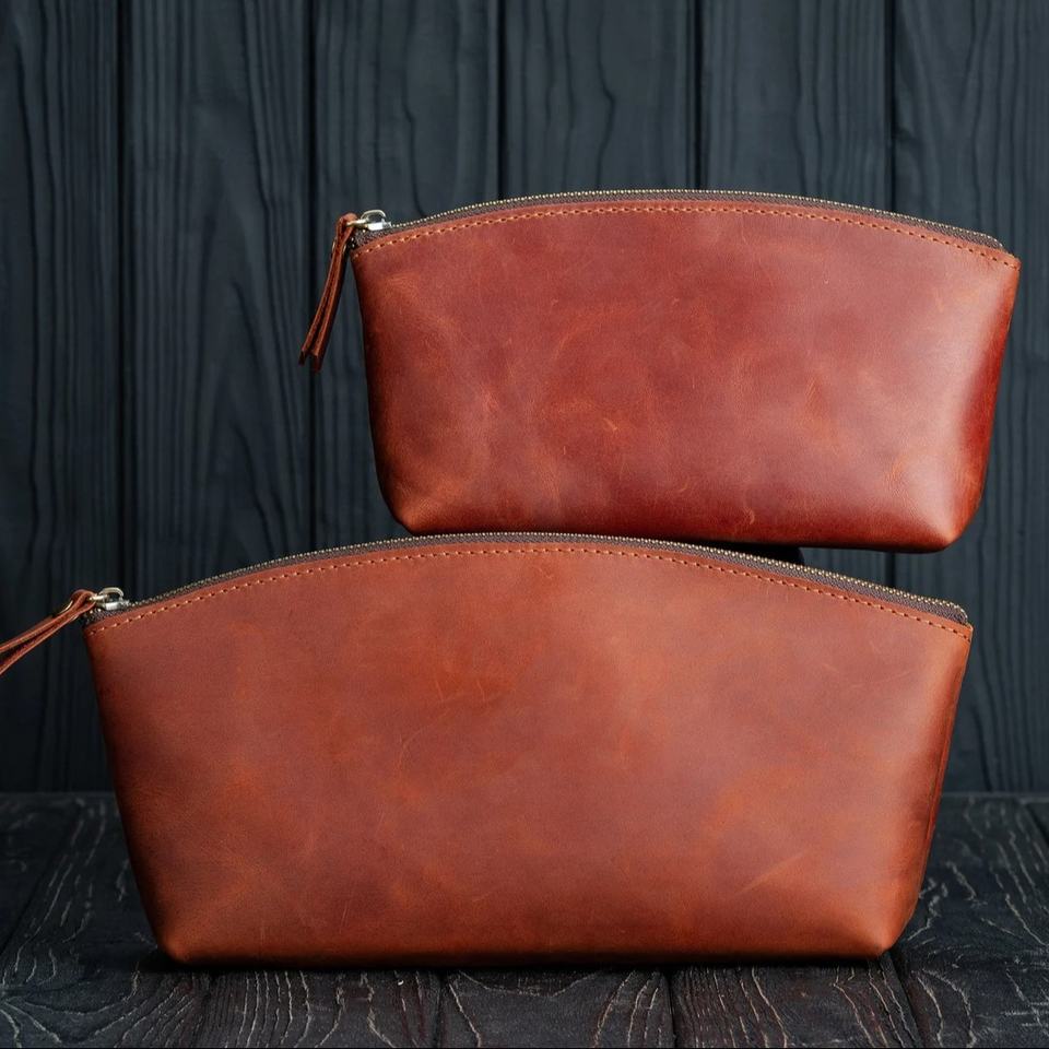 Women's Vintage Style Leather Cosmetic Bag Zipper Closure Personalized Travel for Toiletry for Birthday Makeup Gift