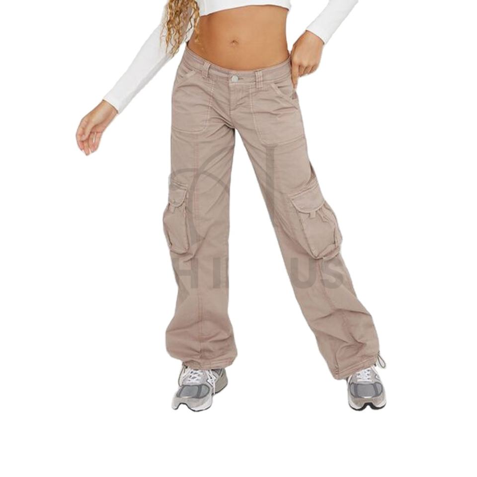 Women's Cotton Baggy Cargo Pants Low Waist Sport Design Elastic Waist Closure Green White Black Colors Flat Front Belt Pockets