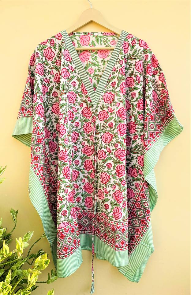 Women's Cotton Block Printed Floral Beach Kaftan Skirt High Quality Custom Summer Sleepwear Free Size 1 Piece Wholesale