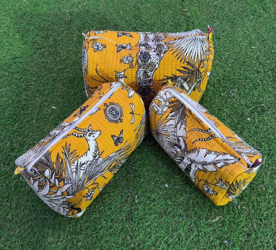 Women's Cotton Block Printed for Toiletry Bag with Zipper Fashion Travel Accessory for Makeup Storage Cosmetic Bag & Case