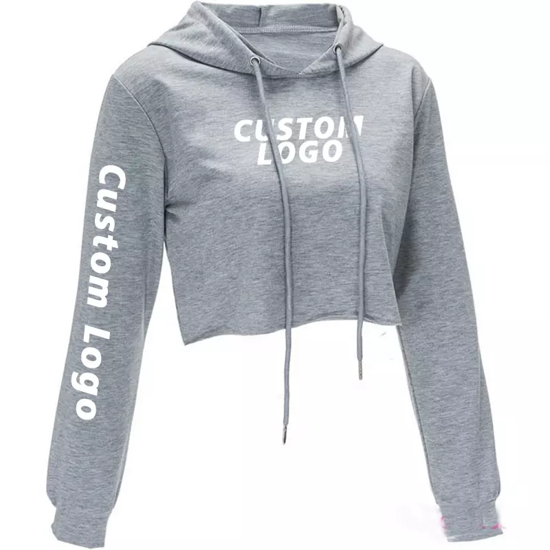 Women's Cotton Fleece Hoodie Wholesale Customizable Cropped Pullover Long Sleeve Gym Hoodie Badge Sequined Embellishments