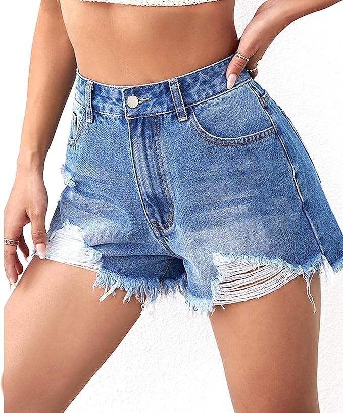 Distressed Ripped Holes High Waist Denim Shorts Stretch Short Jeans