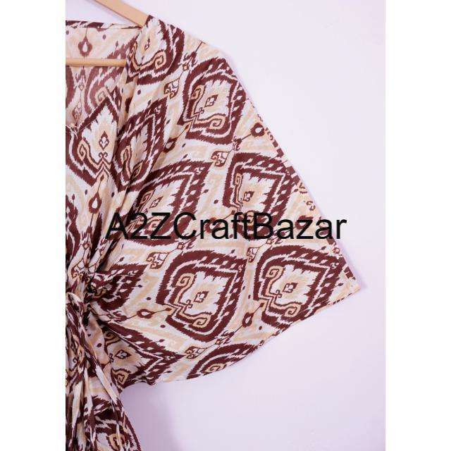 Women's Cotton Kaftan Dress with Skirt Hand Block Printed Summer Sleepwear Short Kaftan and Simple Fashion Element