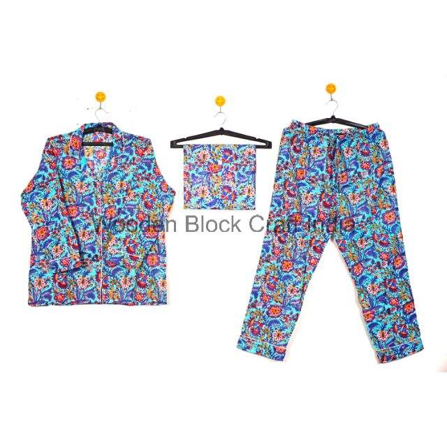 Women's Cotton Nightgown Pajama Set Long Sleeve Casual Floral Unique Design Sleepwear Home Suit Elegant Comfort Pajamas